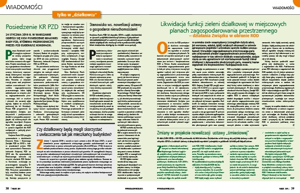 ● Chcecie być na bieżąco? Czytajcie „Wiadomości”! „Tylko w działkowcu” znajdziecie aktualne informacje na temat wydarzeń w Związku i w ogrodach! W tym numerze m.in.: „Przygotowania do walnych zebrań w ROD” oraz „Powrót do korzeni”, czyli o przygotowywanym w PZD nowym „Programie nowoczesnego zagospodarowania i użytkowania działek na miarę potrzeb współczesnych rodzin”, który będzie promował m.in. łatwe w uprawie oraz bardzo zdrowe gatunki warzyw, owoców i ziół, a także atrakcyjne i nowoczesne metody ich uprawy!