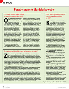● W rubryce „Porady prawne dla działkowców” podajemy wyjaśnienia najważniejszych i aktualnych kwestii prawnych związanych z użytkowaniem działki i członkostwem w Związku. W tym numerze odpowiemy na pytania: „Czy babcia może przenieść działkę na wnuczkę z pominięciem córki?”, „Jakie mogą być konsekwencje zamieszkiwania na działce w ROD?”, „Czy na terenie każdego ROD muszą być kontenery na śmieci?”.