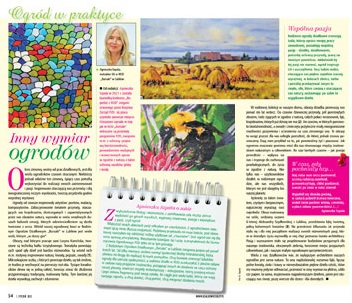 ● Ogrody wyzwalają w duszach wrażliwych wiele emocji, których odzwierciedleniem są dzieła tworzone z serca. Wspaniale ukazuje to napisany ze swadą artykuł autorstwa Agnieszki Szpali – laureatki tegorocznego konkursu PZD „Reportaż z ROD”, która na przykładzie ROD „Bursaki” w Lublinie ukazuje wielowymiarowe znaczenie ogrodów działkowych, które zrzeszają ludzi odnajdujących w naturze inspiracje i realizujących swoje artystyczne pasje.