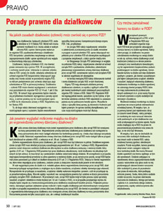● W rubryce „Porady prawne dla działkowców” podajemy wyjaśnienia najważniejszych i aktualnych kwestii prawnych związanych z użytkowaniem działki i członkostwem w Związku. W tym numerze odpowiemy na pytania: „Czy można zainstalować kamerę na działce w ROD?”, „Na jakich zasadach działkowiec (członek) może zwrócić się o pomoc PZD?”, „Jak powinno wyglądać rozliczenie majątku na działce po wypowiedzeniu umowy dzierżawy działkowej?”.