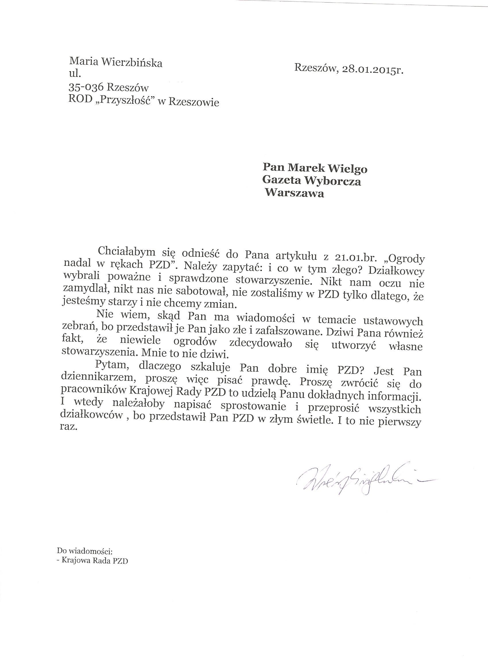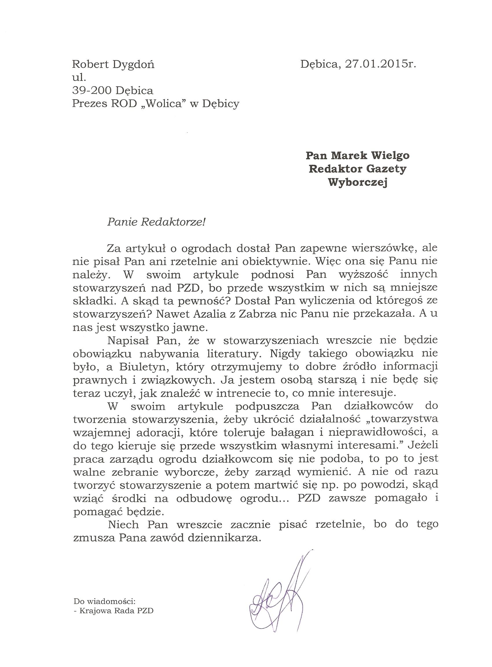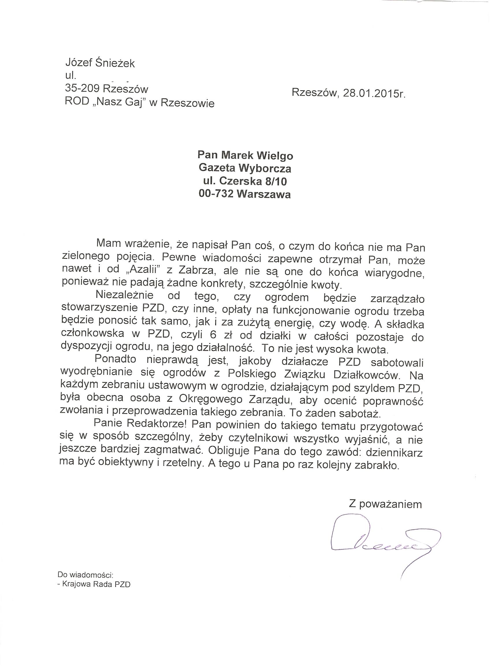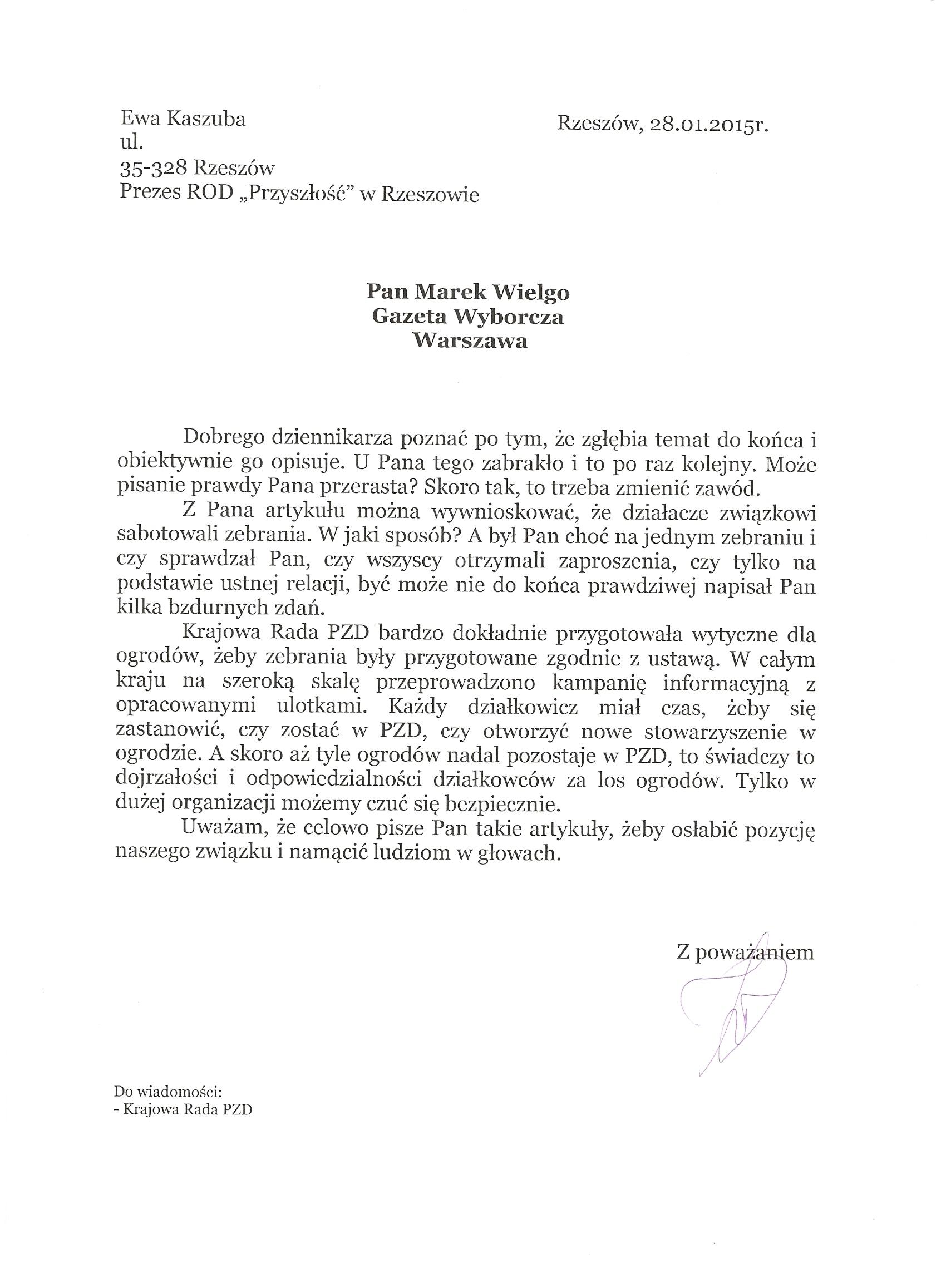 Działkowcy piszą do Gazety Wyborczej