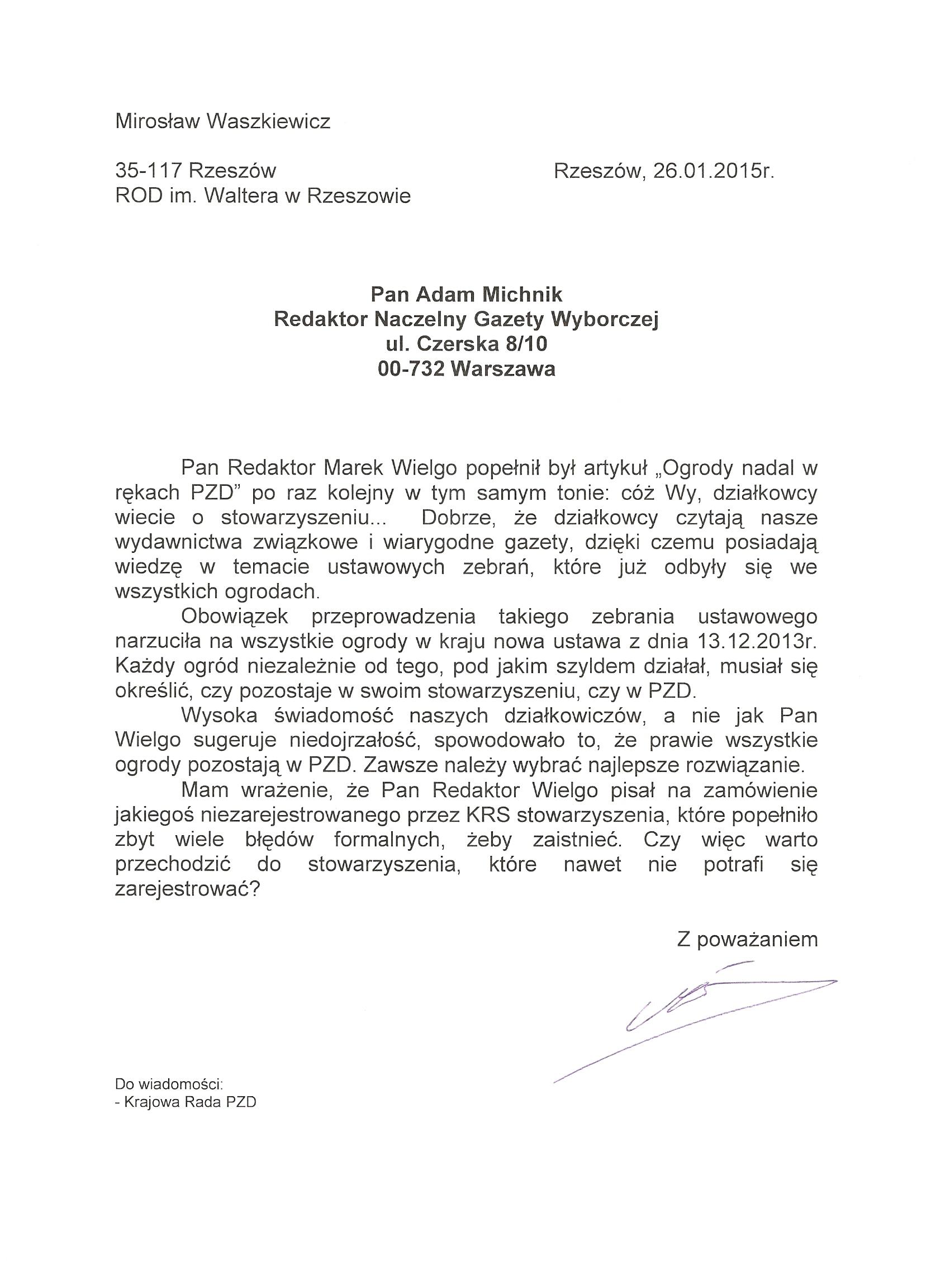 List Pana Mirosława Waszkiewicza