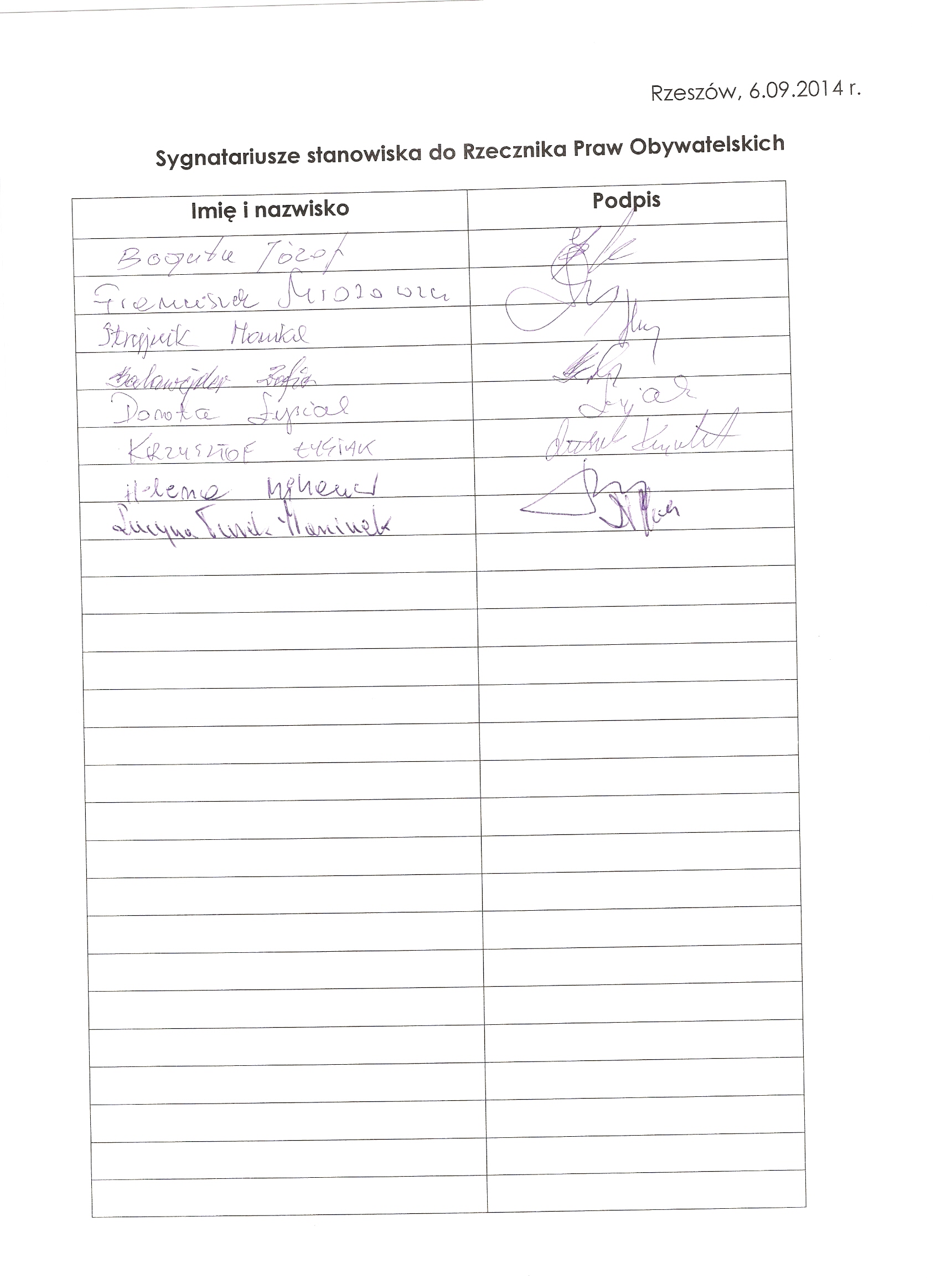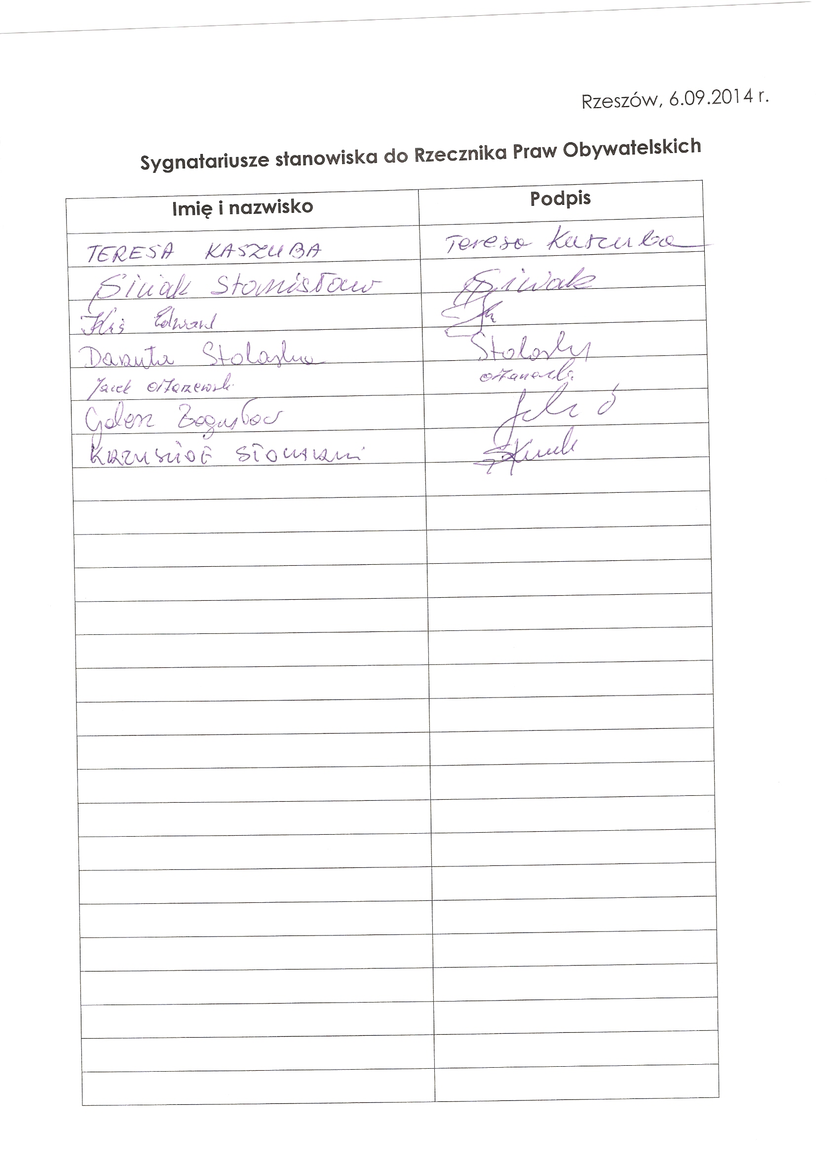 podpisy pod listem