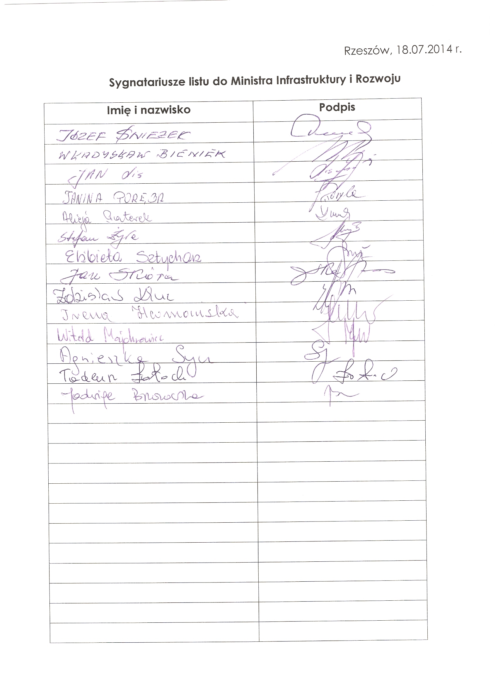 Sygnatariusze listu do Ministra Infrastruktury i Rozwoju