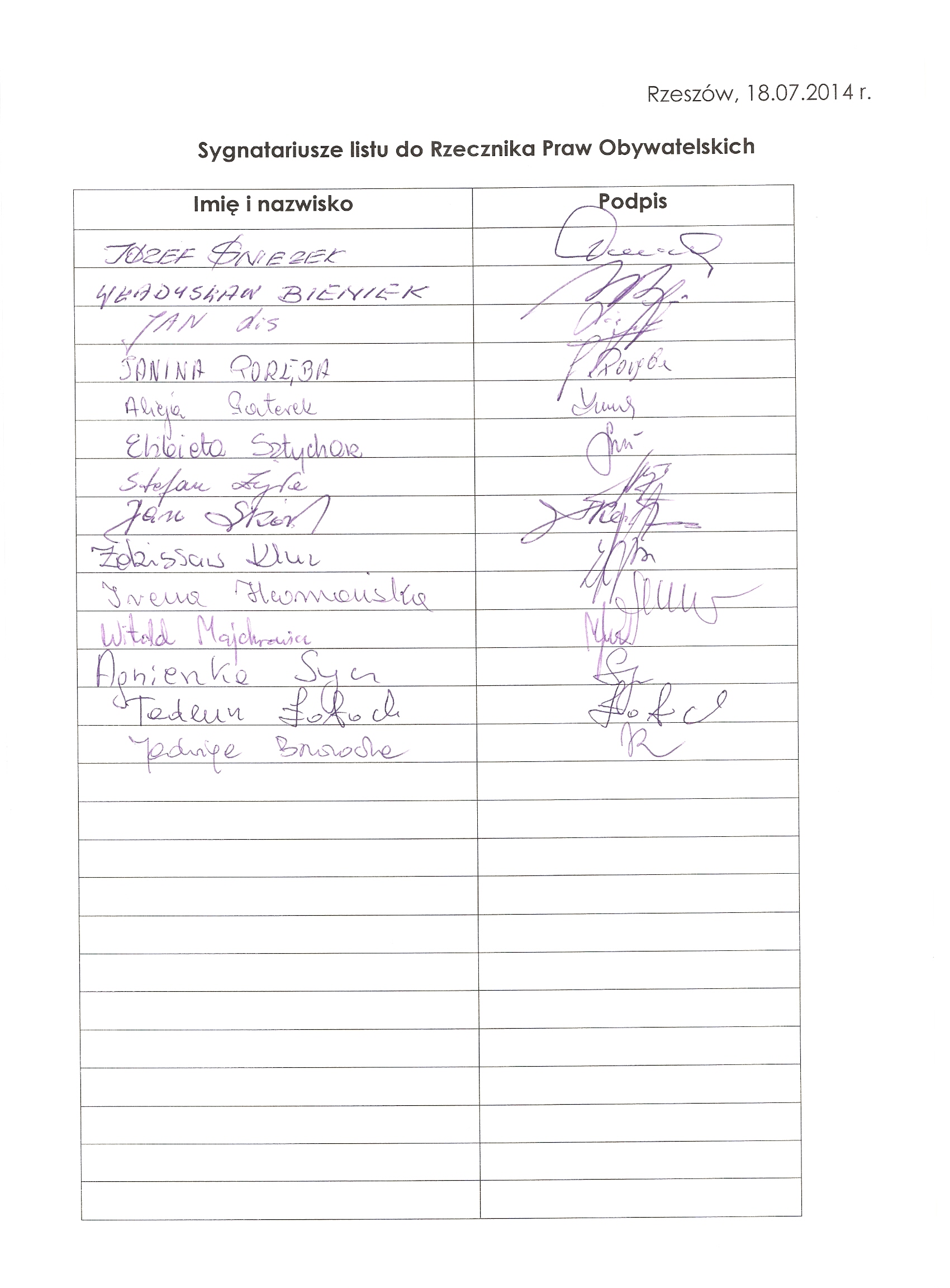 List członków Prezydium Okręgowego Zarządu Podkarpackiego PZD w Rzeszowie do Rzecznika Praw Obywatelskich