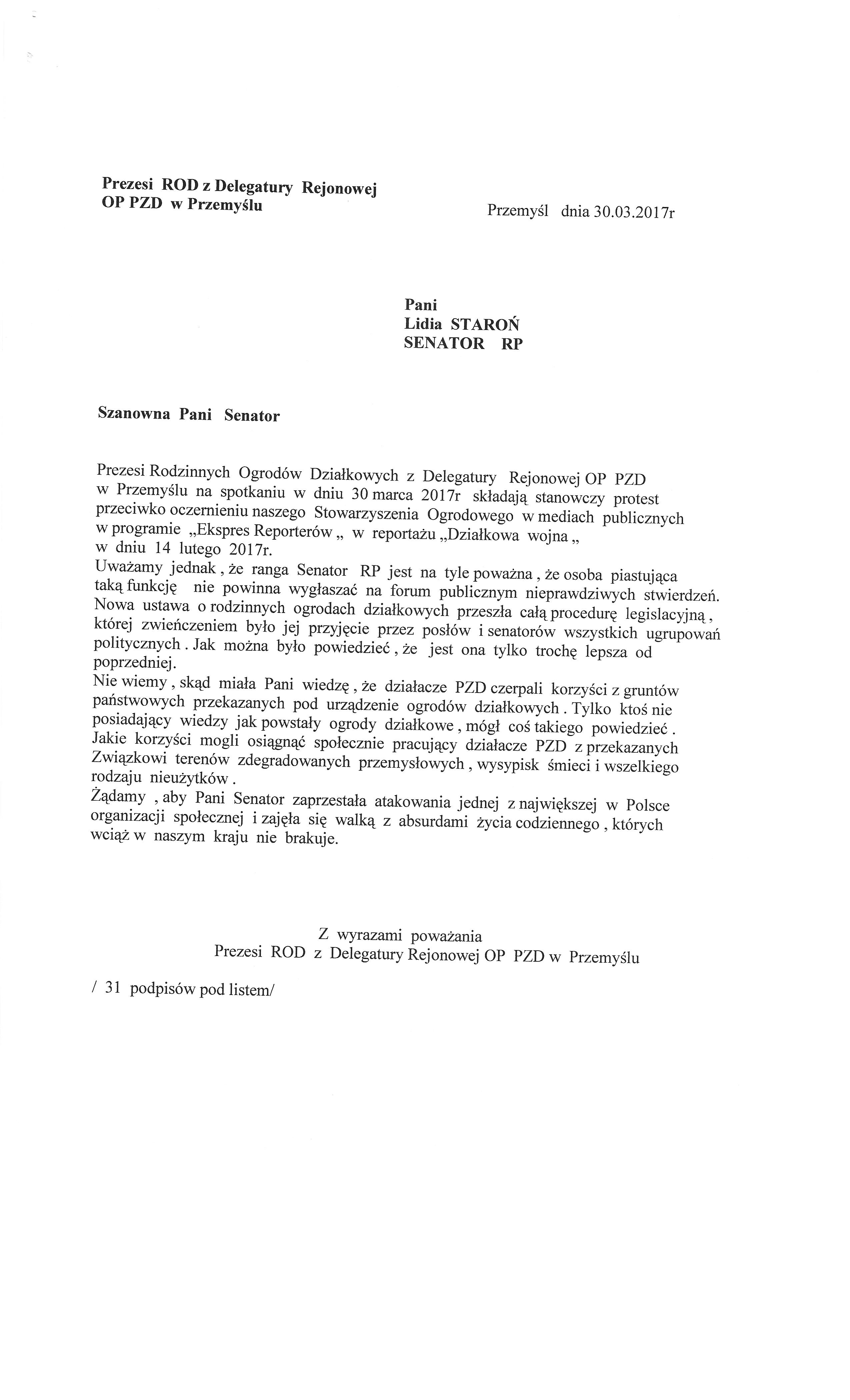 List od Prezesów ROD w Przemyślu