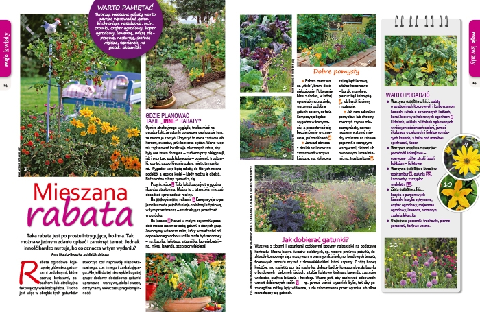 • Mieszane rabaty – Działka to cudowne miejsce. Jednak, aby była ona w pełni wykorzystana należy uprawiać na niej zarówno gatunki ozdobne jak i uprawowe. Idealnym pomysłem jest zatem tworzenie „mieszanych rabat” – są piękne, smaczne, wygodne i praktyczne.