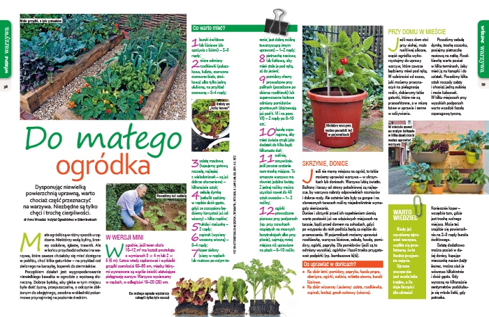 • Do małego ogródka – Bądź na topie! Małe warzywne ogródki są modne! Poznaj najlepszy dobór gatunków w wersji mini i sposoby ich uprawy na działce i na balkonie.