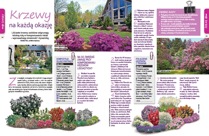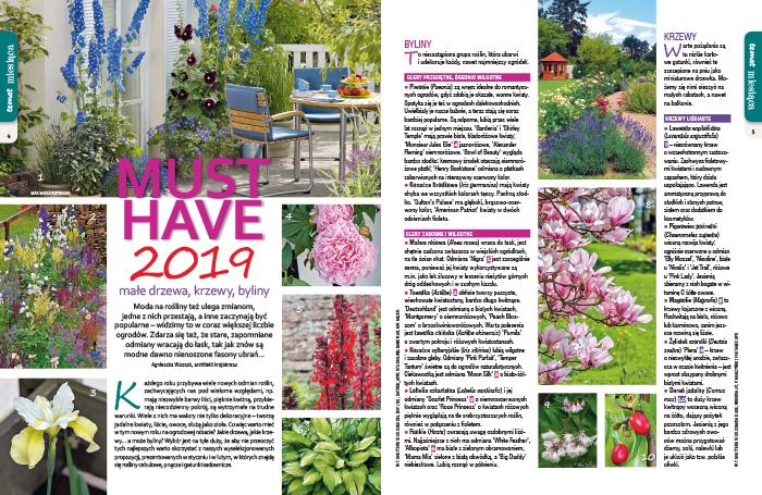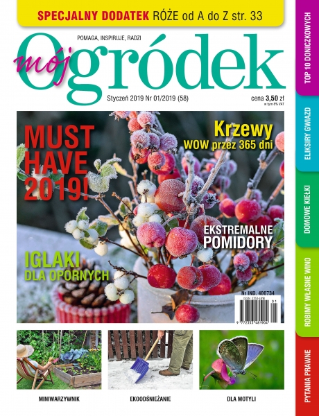 W styczniowym numerze znaleźć można kontynuację Gatunków dla opornych, czyli dla tych, którzy z jakiś przyczyn jeszcze mało wiedzą o roślinach, oraz mają mało czasu na prace ogrodnicze, a chcą aby ich działka była piękna przez cały sezon. W tym wydaniu polecamy krzewy iglaste – zawsze modne i chętnie sadzone na działkach.